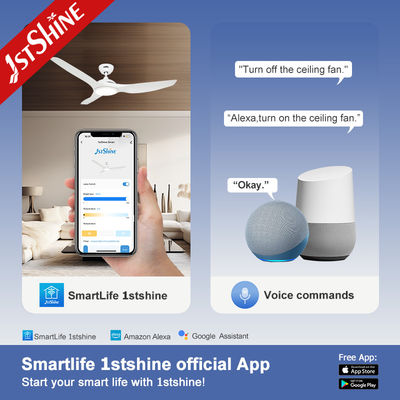 Ventilateur de plafond silencieux à grand débit d'air de 52 pouces blanc avec LED, cinq vitesses et télécommande
